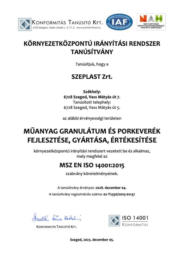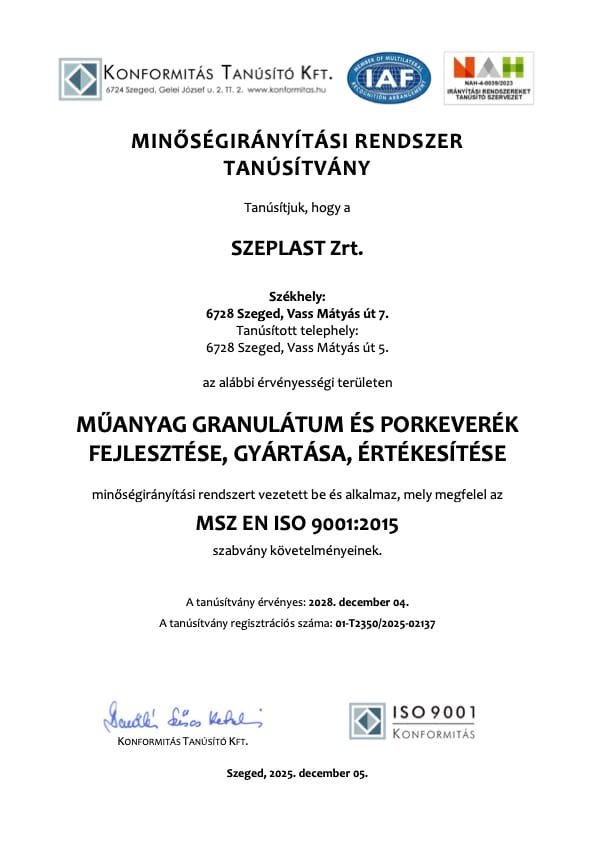 MinősítésekVállalkozásunk minden folyamatában kiemelt figyelmet fordít a vevői és minőségi igényeknek való megfelelés biztosítására.